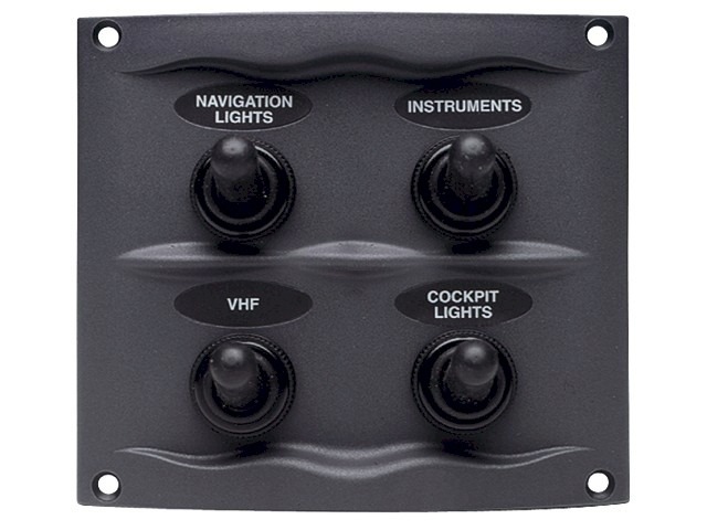 Compact, modern en ergonomisch ontwerp. Waterproof volgens IPX5 norm. Spatwaterdichte inline steekzekeringhouders 2 x 15 amp. Paneel met 4 schakelaars, inclusief stickervel. Afmeting ( hxbxd) 95 x 107 x 75 mm