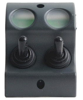 Spatwaterdichte Duo Schakelaar voor diverse toepassingen te monteren in je cockpit of zijpaneel van je visboot. Met stickervel.
