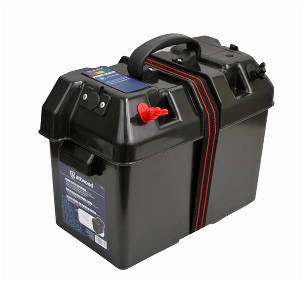 Deze waterdichte accubak is zeer geschikt voor op een boot zonder accucompartiment. De Trolling Motor Power Center is een accubak van het merk Attwood en geeft uw accu bescherming tegen spatwater, stof en vuil. U kunt de accu makkelijk aansluiten in de accubak. Nadat u de accu heeft aangesloten in de accubak kunt u apparatuur, zoals een acculader, aansluiten op de accubak zelf zonder dat u de accu uit de bak hoeft te verwijderen. Op deze manier blijft uw accu beschermd en hoeft u zich geen zorgen te maken om de staat van uw accu. Zo kunt u uw accu zonder zorgen mee aan boord nemen van een kleine boot, zoals een rubberboot of een kleine polyesterboot.