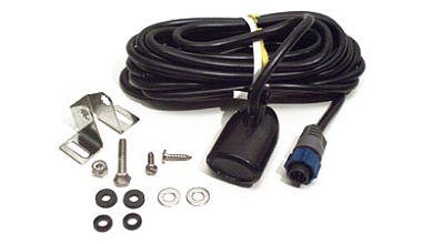 HST-WSBL 83/200 kHz spiegeltransducer met geïntegreerde temperatuursensor. Blauwe connector en geschikt voor: