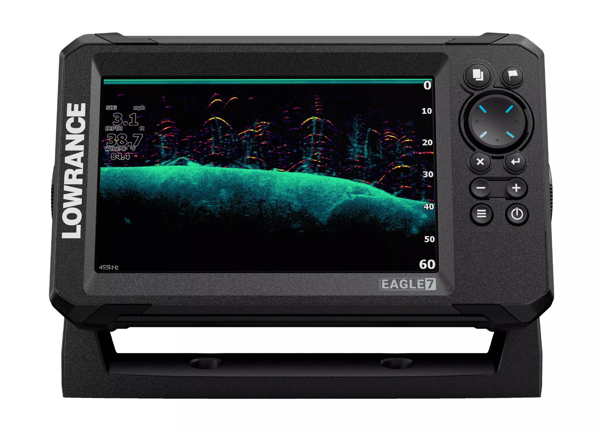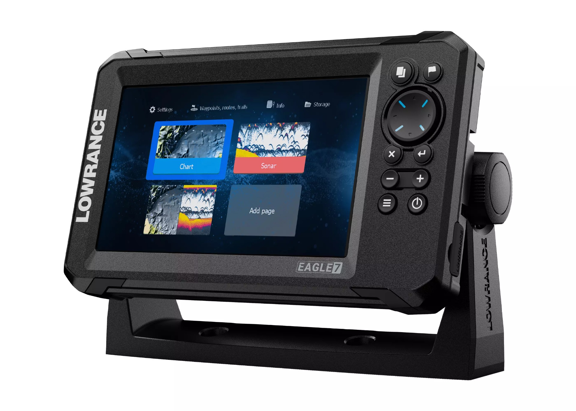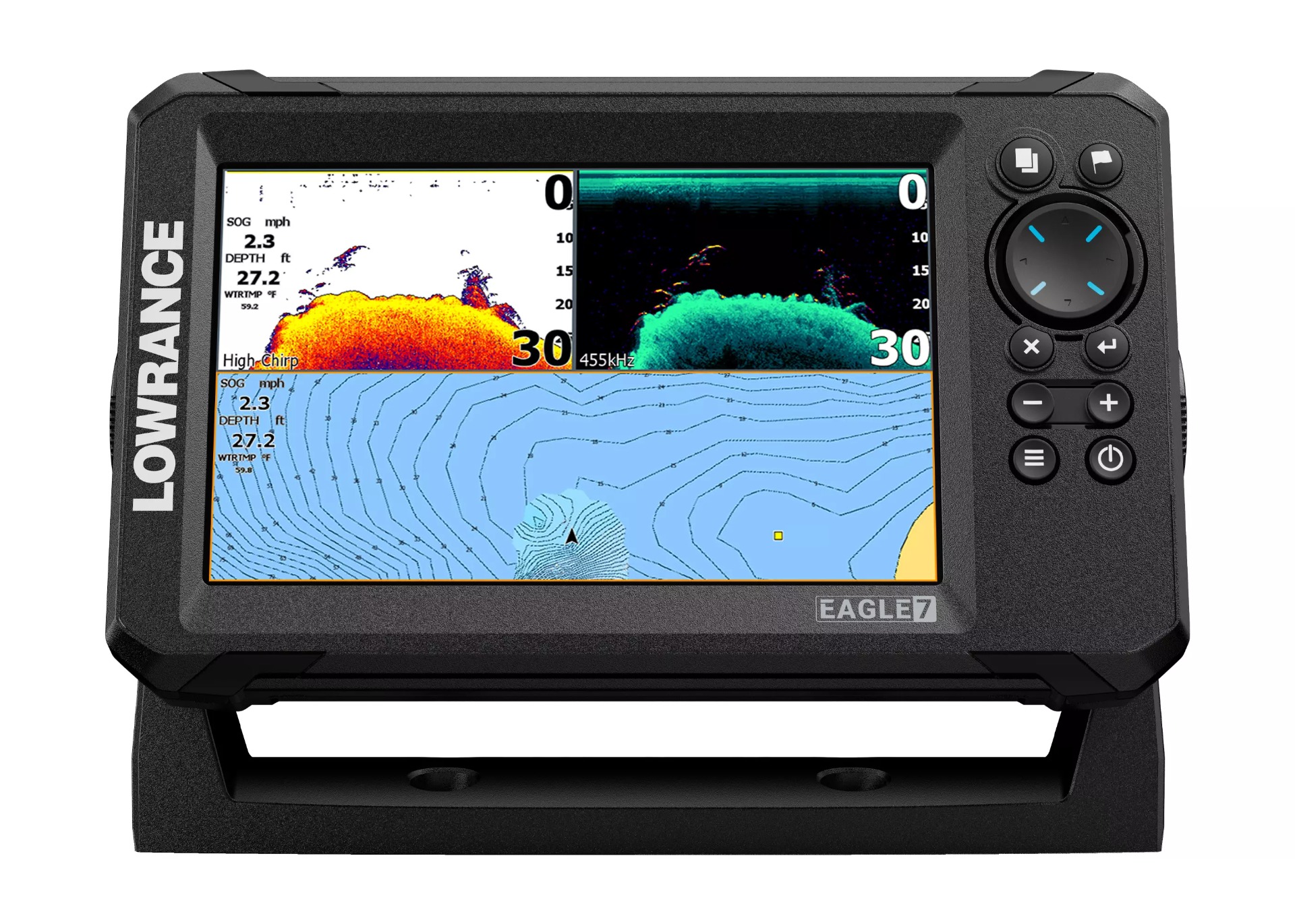 Overtuig jezelf van de krachtige sonar en de veelzijdige plotterfuncties van de Lowrance Eagle-7 dieptemeter. Met de SplitShot HD transducer profiteert u van de voordelen van High CHIRP en DownScan beeldvorming. De TripleShot HD transducer biedt u extra SideScan Imaging. Welke variant u ook kiest, de Eagle-7 biedt u beelden met een hoge resolutie en een grote kijkhoek. Het IPS-scherm zorgt er bovendien voor dat u alles in de gaten kunt houden, zelfs in direct zonlicht.