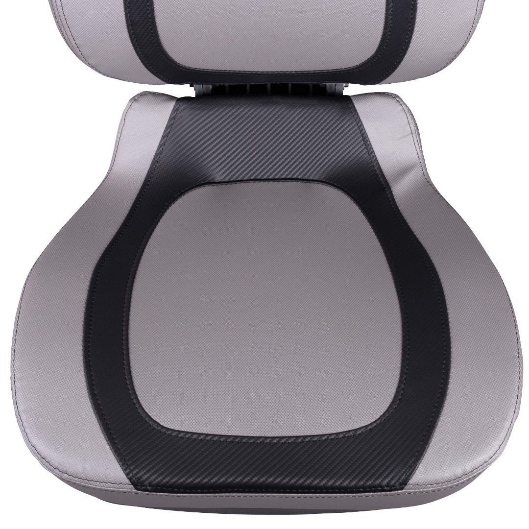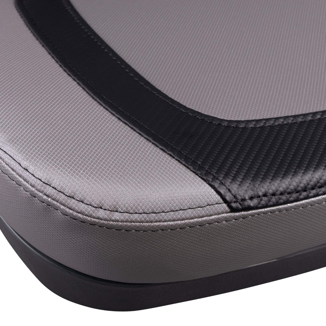 Met de Fish Pro II heeft Springfield een zeer mooie en tegelijkertijd comfortabele en functionele bootstoel ontwikkeld. Dit onderstreept ook de keuze van het bekledingsoppervlak. Als basiskleur werd gekozen voor een aangenaam marinevinyl in grijs. Als blikvanger werd een ander marine vinyl afgezet in zwarte carbonoptiek en vastgenaaid met zwarte naden.