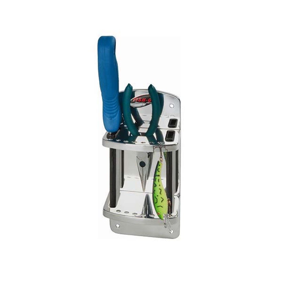 Een stijlvolle oplossing voor een functionele organizer: de roestvrijstalen messen, kunstaas en tanghouder van Fish-On! uit de Tempress-toernooiserie. Hierdoor berg je je gereedschap veilig en handig op in de boot.
