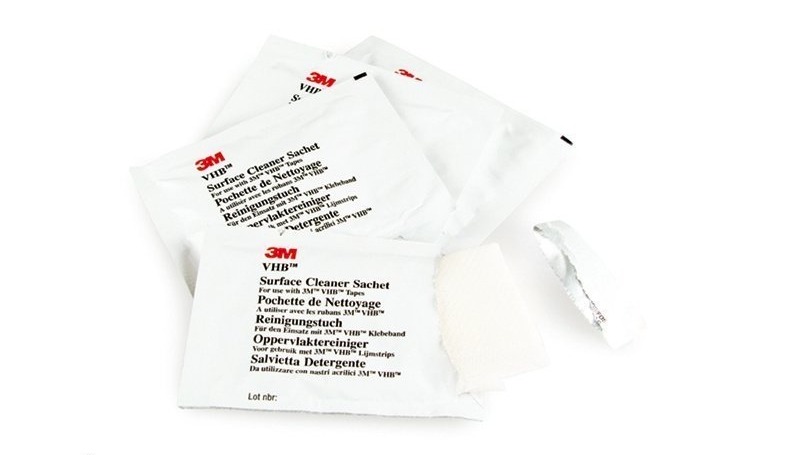 Om je lijmoppervlakken optimaal voor te bereiden, bieden we reinigingsdoekjes van 3M VHB aan.