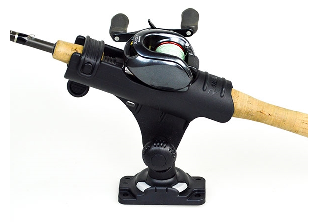 Deze hengelhouder is de kleinere/lichtere uitvoering van de Hengelhouder II. Ontworpen voor b.v. spin- en baitcaster hengels, als houder voor op een bellybooat b.v. Lichte hengelhouder voor binnenwater, niet geschikt voor het trollen op grote vissen. De rekbare riem aan de voorkant van de houder, voorkomt dat de hengel uit de houder gaat wanneer een vis aanbijt. Robuust glasvezel versterkt kunststof en rvs beslag.
