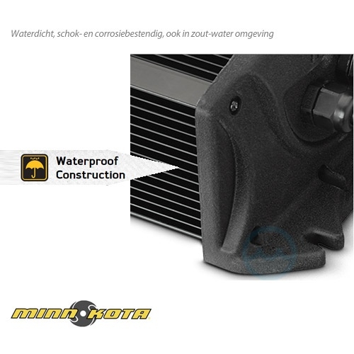 De Minn Kota MK-106E acculader is waterbestendig, schokbestendig en corrosiebestendig, ook in een zout-water omgeving.