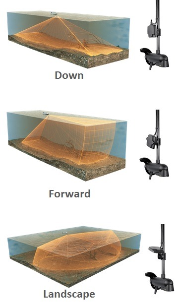- Kies uit meerdere live sonar weergaves; Vooruit, omlaag en horizontaal landschap door de MEGA Live transducer op de meegeleverde trollingmotor asbevestiging te verdraaien.