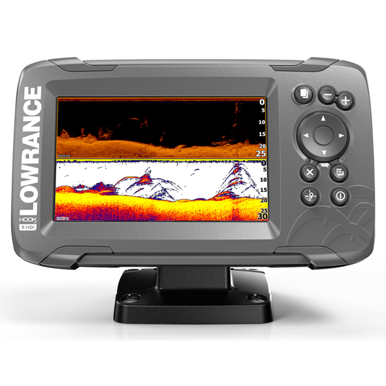 De HOOK² 5 SplitShot is 's werelds meest gebruiksvriendelijke fish finder en biedt eenvoudige menu's, gemakkelijke toegang tot belangrijke functies en Autotuning sonar. De HOOK² 5 wordt aangedreven door beproefde Lowrance® prestaties en beschikt over brede High CHIRP dekking en DownScan Imaging™, plus een gedetailleerde kaart van de VS of een basiskaart van de wereld. Sluit de sonar aan en begin direct met vissen. Zo makkelijk is het.