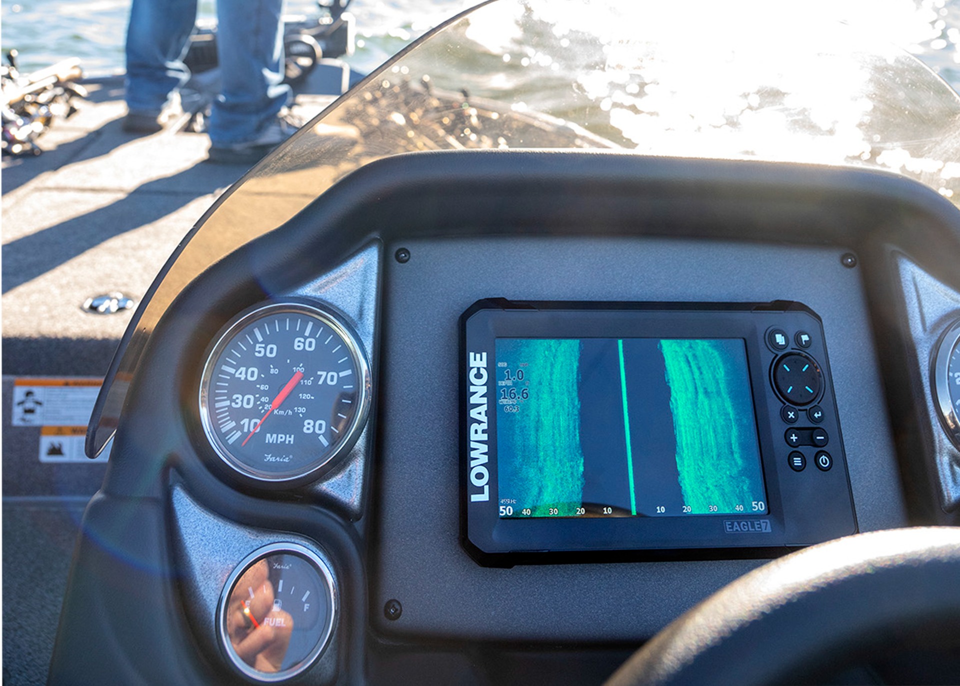 Omdat de sonar zelf de fijnafstelling doet en de menunavigatie gebruiksvriendelijk en eenvoudig is, is de Lowrance Eagle-7 fishfinder ook geschikt voor beginners. Je kunt je ook verheugen op praktische functies zoals FishReveal, waarmee je zelfs verborgen vis kunt lokaliseren, en Genesis Live, waarmee je je favoriete visroutes in realtime kunt vastleggen.